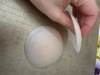 This father, it is thin, it has no glue, it brings a hard plastic cover to store them, it is not to lift it is only to cover the nipple, I'm testing them to see if they don't fall in the heat