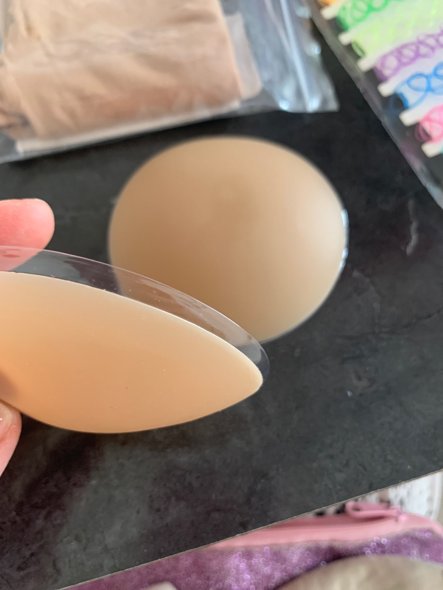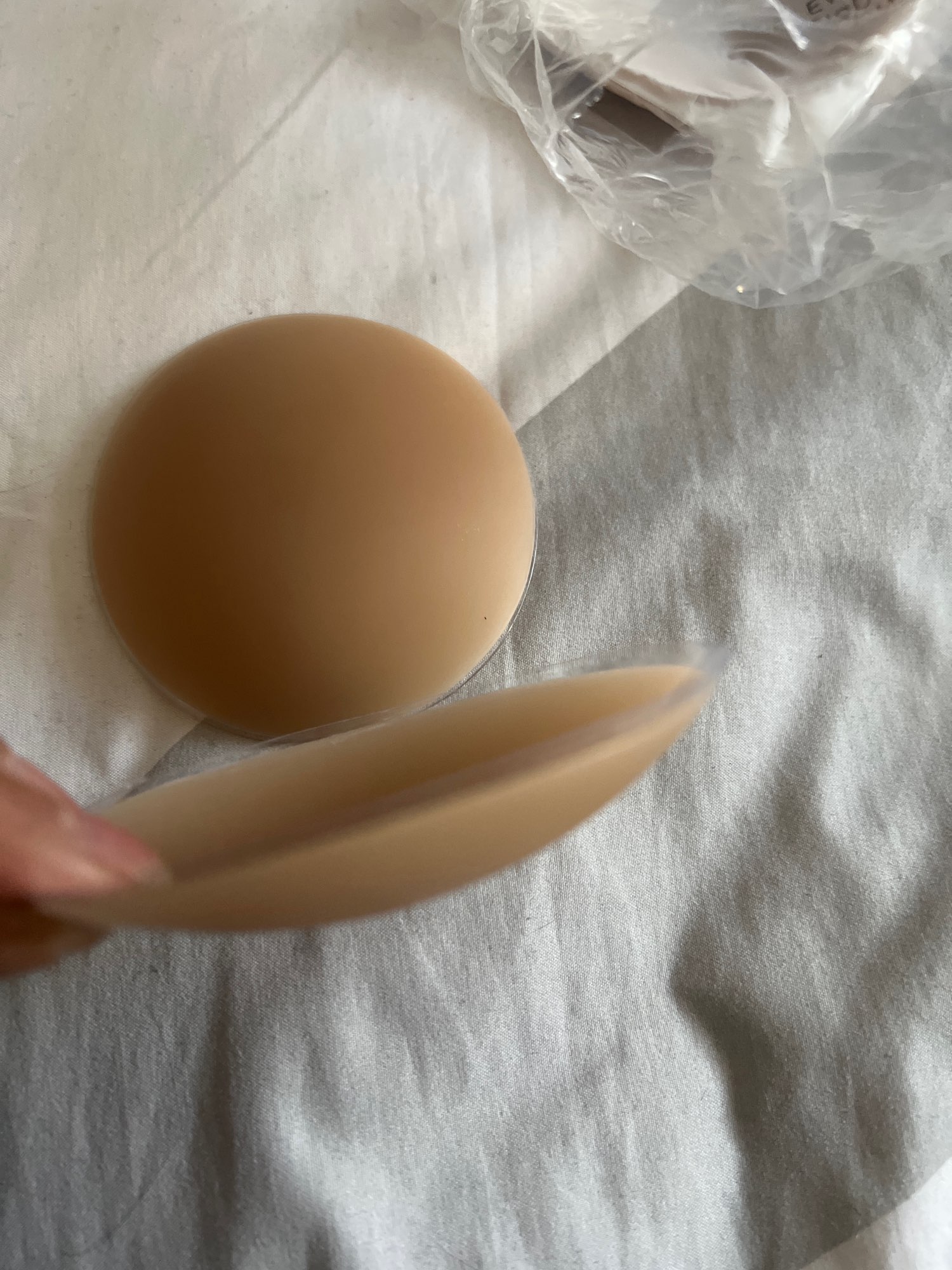 That cover is my salvation, now I can wear any top without bra! It’s soft and easy to apply. The cover is really thin and invisible! Fast delivery, 10 days to Ukraine. I definitely recommend it! On the last photo example you can see the difference with that cover and without it!
