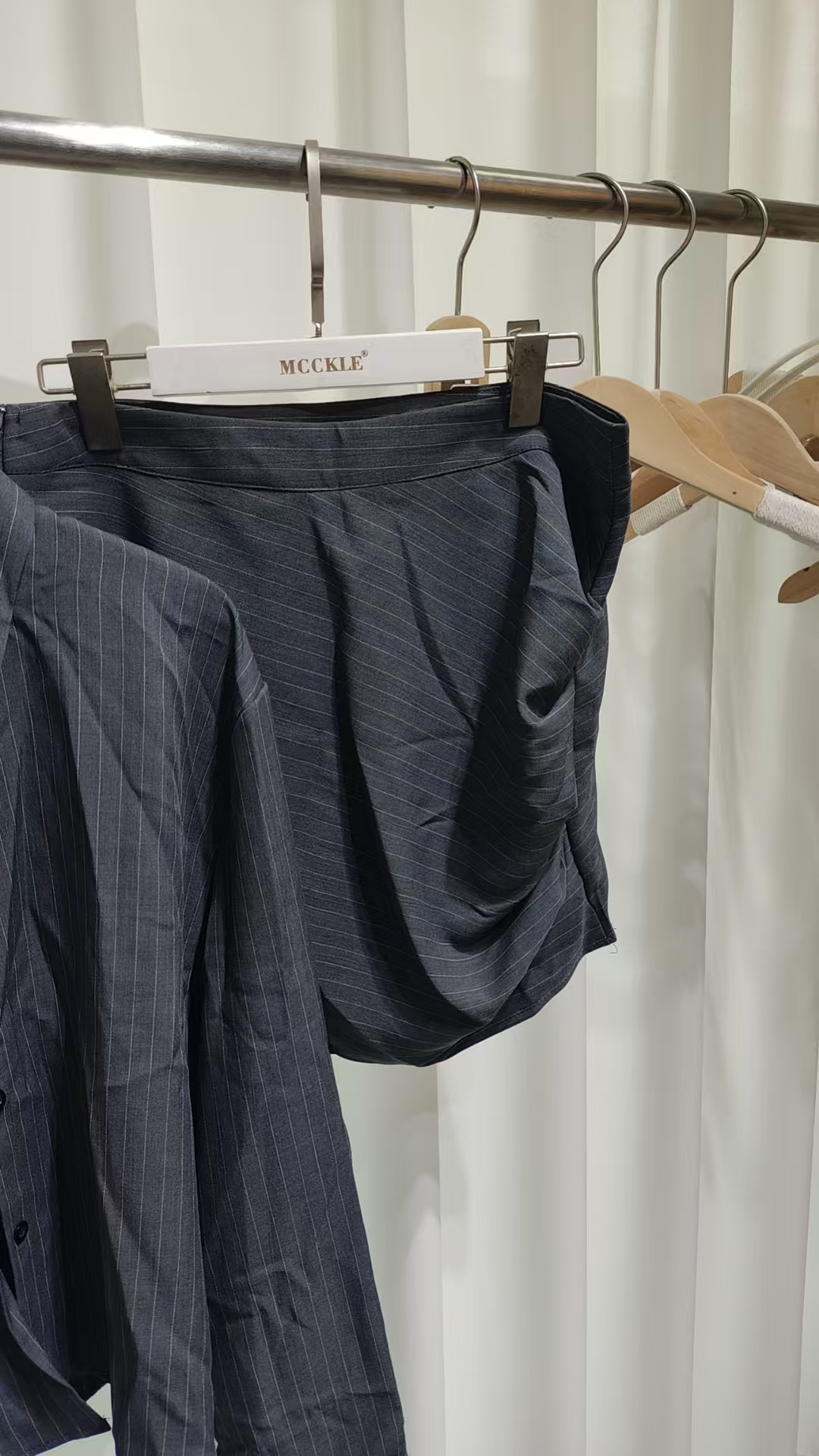 Pinstripes give it a sense of exquisiteness, while short shirts add elements of modern fashion. It is very versatile.