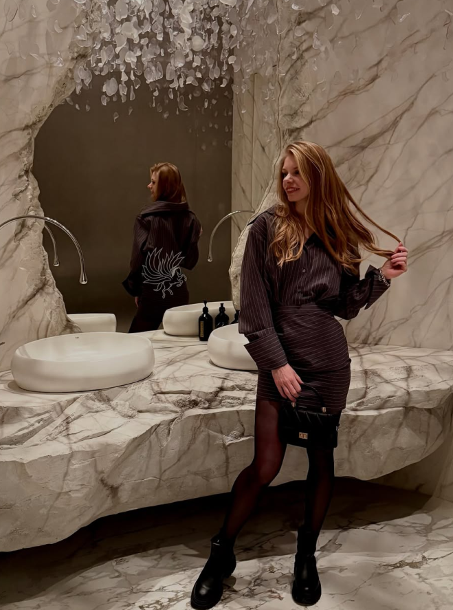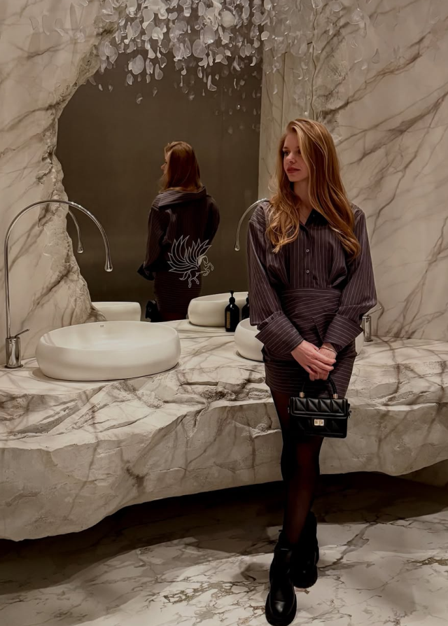 The quality is excellent, really. The fabric is thick, but still light, even in summer it won't be super hot. minus!! I ordered the smallest size that was available, it turned out to be big for me (my measurements are 172 cm 87-63-95), but if you hem the skirt a little, it will be perfect! In the photo, the sleeves are not pinned, when buttoned, they look unusual and beautiful! In general, I recommend it, but be careful with the sizes! the xs suit is too big for us in Russia.